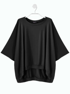 Dieses schlichte Oberteil begeistert einfach, wenn du es großzügig und leger magst. Der raffinierte Oversize-Schnitt sorgt für einen modernen, lässigen Look. Die weiten Kimonoärmel sind in einer schönen 3/4-Länge gehalten und runden das Design ab. Die Länge des Tops zeichnet sich durch eine Asymmetrie aus, die vorne kürzer und hinten länger fällt. Die Weite wird mittels Abschlussbund etwas zusammengefasst und gibt dem Oberteil Struktur. Das Oberteil kann auch gerne vorne etwas in einen Bund gesteckt werden, um einen dynamisch lässigen Look zu erzeugen. Der fließende Jersey fühlt sich angenehm auf der Haut an und bietet höchsten Tragekomfort – perfekt für ein entspanntes Wohlgefühl ohne einengende Wirkung.